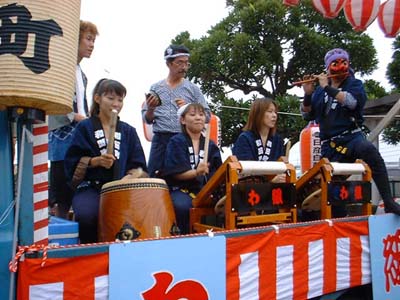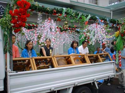 ![]() 女性チーム 今回新登場の女性チームです。6月より熱心に練習をかさねて、めを見張るほど上達しました。お祭にはまってしまい衣装も揃えてこれからずっと参加するでしょう。 |