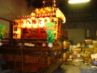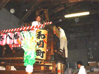 山車の飾り付けの最中です、一週間前から夜集まって仕度をします。