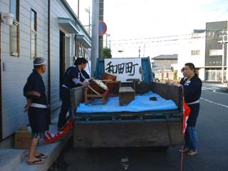 お祭の準備に数ヶ月前から会合を開き祭のスケジュールを考え警察の許可を申請したり一ヶ月前から太鼓の練習、提灯の確認、山車や御輿の飾り付けなど皆さん忙しい日が続きます。 お祭が終わった後も次の日はかたずけに追われます。 |